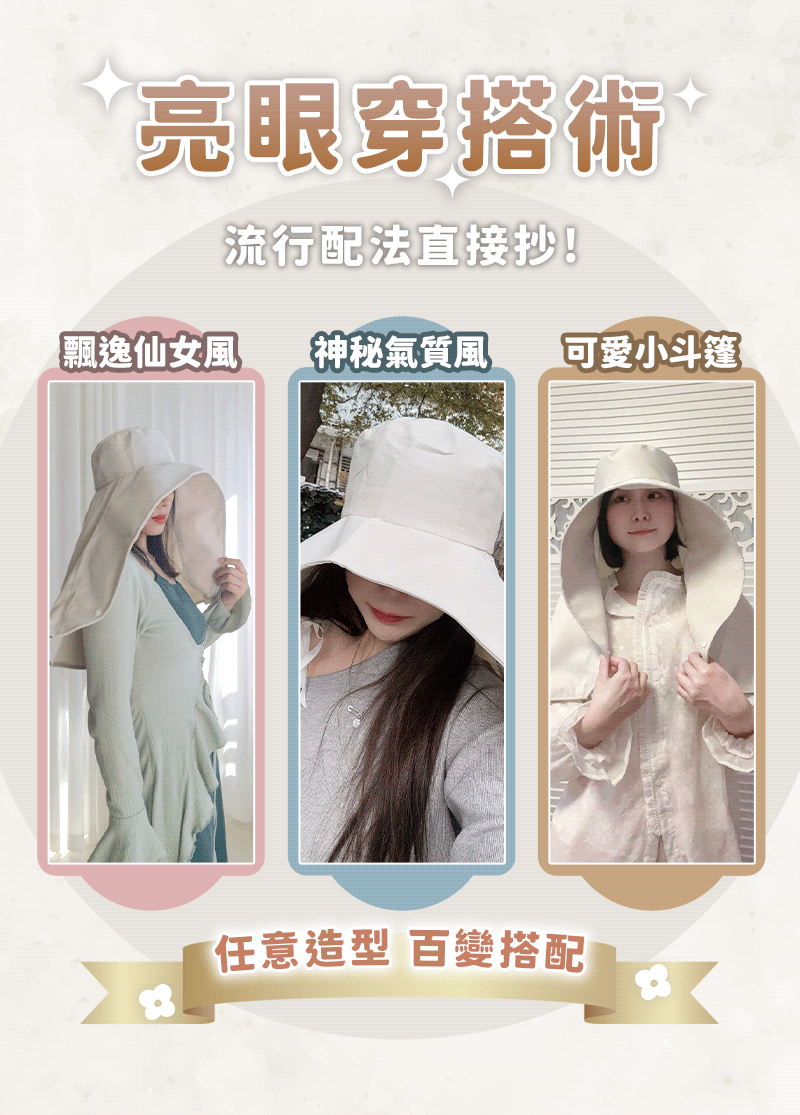 【夏季熱銷TOP1單品】 😍 披肩防曬帽讓妳美美登場 🫶一戴V臉,時尚完成度UP! 🫶加大帽簷,全面防護,拒絕色差! 🫶髮洞設計,髮型依舊完美! 🫶記憶帽簷,風格造型隨心變!