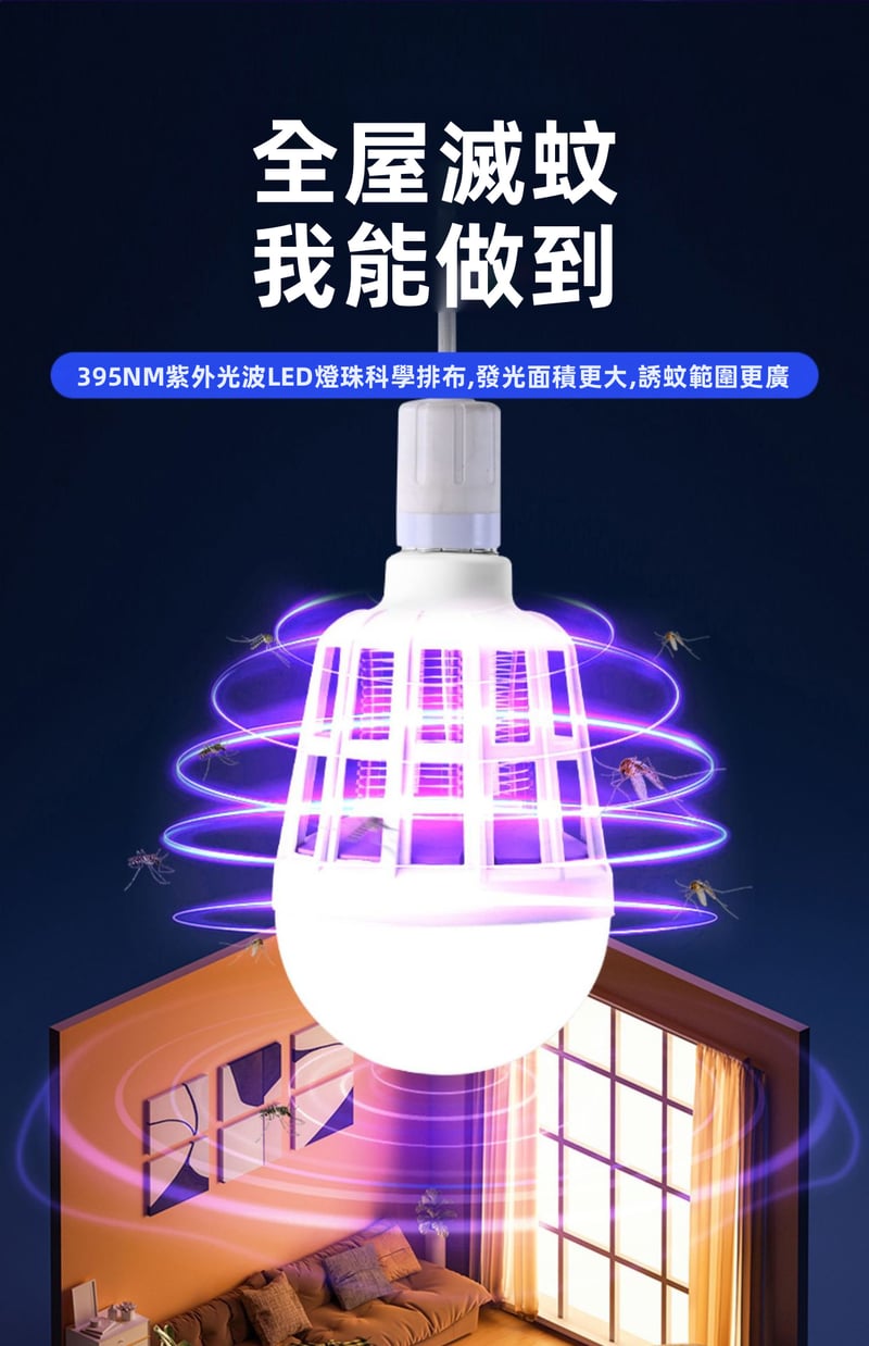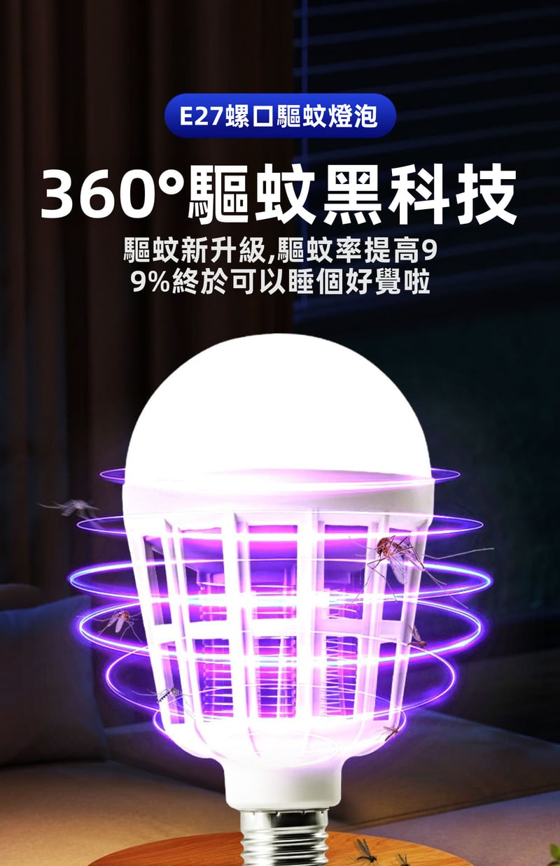 7分鐘前限時搶購 LED照明滅蚊燈E27螺口一擰即裝,UV紫光誘蚊,節能LED無頻閃,護眼超安全,居家戶外兩相宜 - 3入組-【均價399】NT$1199