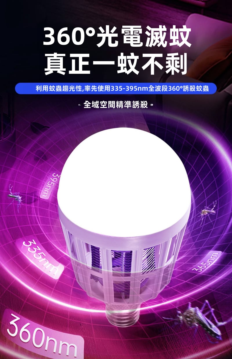 5分鐘前限時搶購 LED照明滅蚊燈E27螺口一擰即裝,UV紫光誘蚊,節能LED無頻閃,護眼超安全,居家戶外兩相宜 - 5入組-[均價299】NT$1499