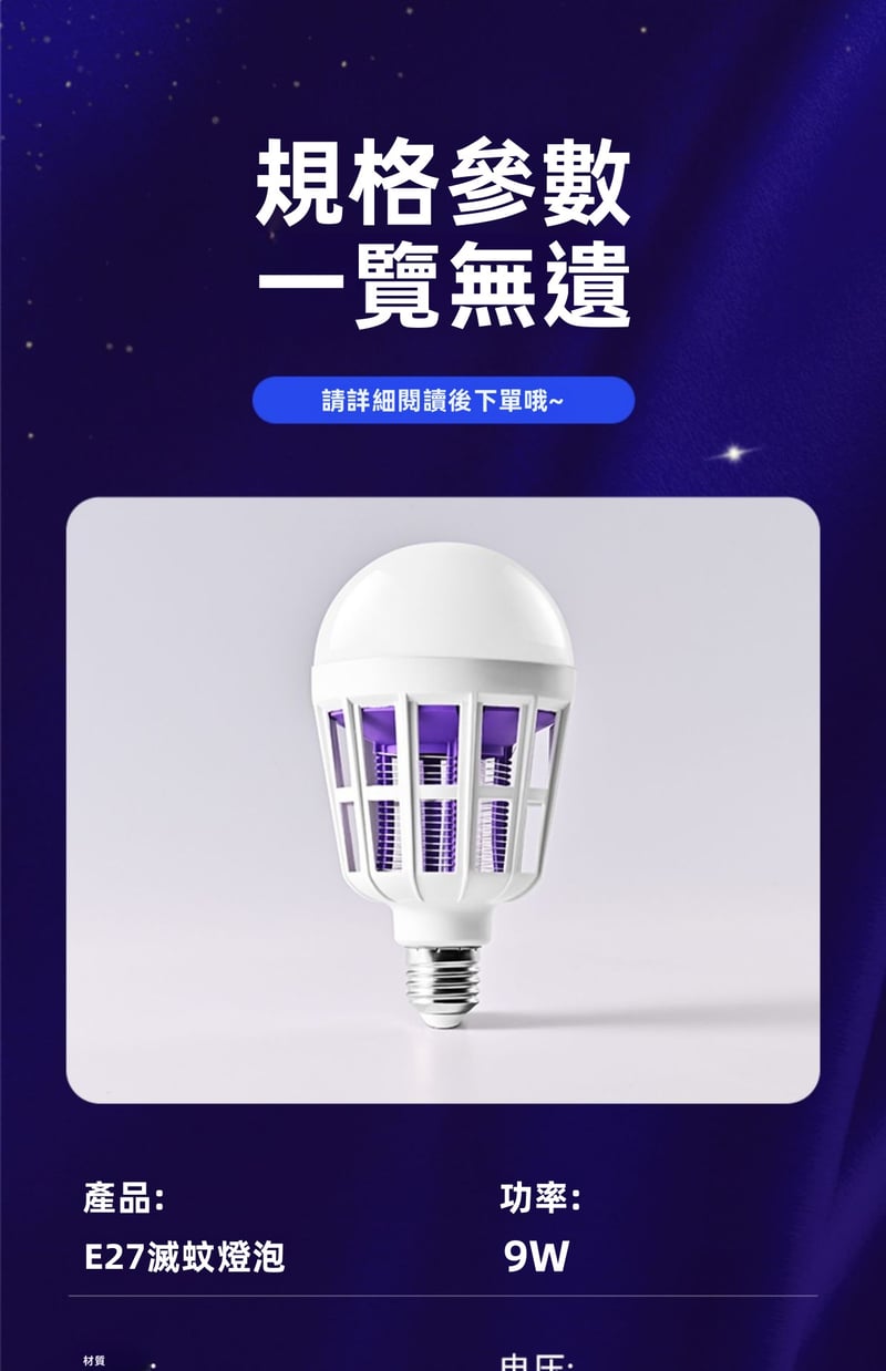 7分鐘前限時搶購 LED照明滅蚊燈E27螺口一擰即裝,UV紫光誘蚊,節能LED無頻閃,護眼超安全,居家戶外兩相宜 - 2入組-【買一送一】NT$999