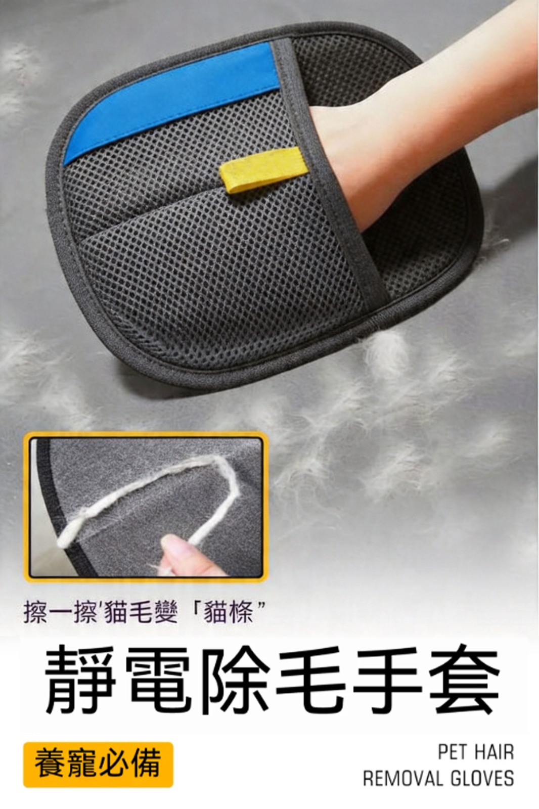 半小時前寵物靜電除毛手套【靜電吸附 除毛更輕鬆】,輕輕一戴,毛髮一抹即淨,讓家裡瞬間乾淨整潔! - 1入組【嘗鮮款】NT$999