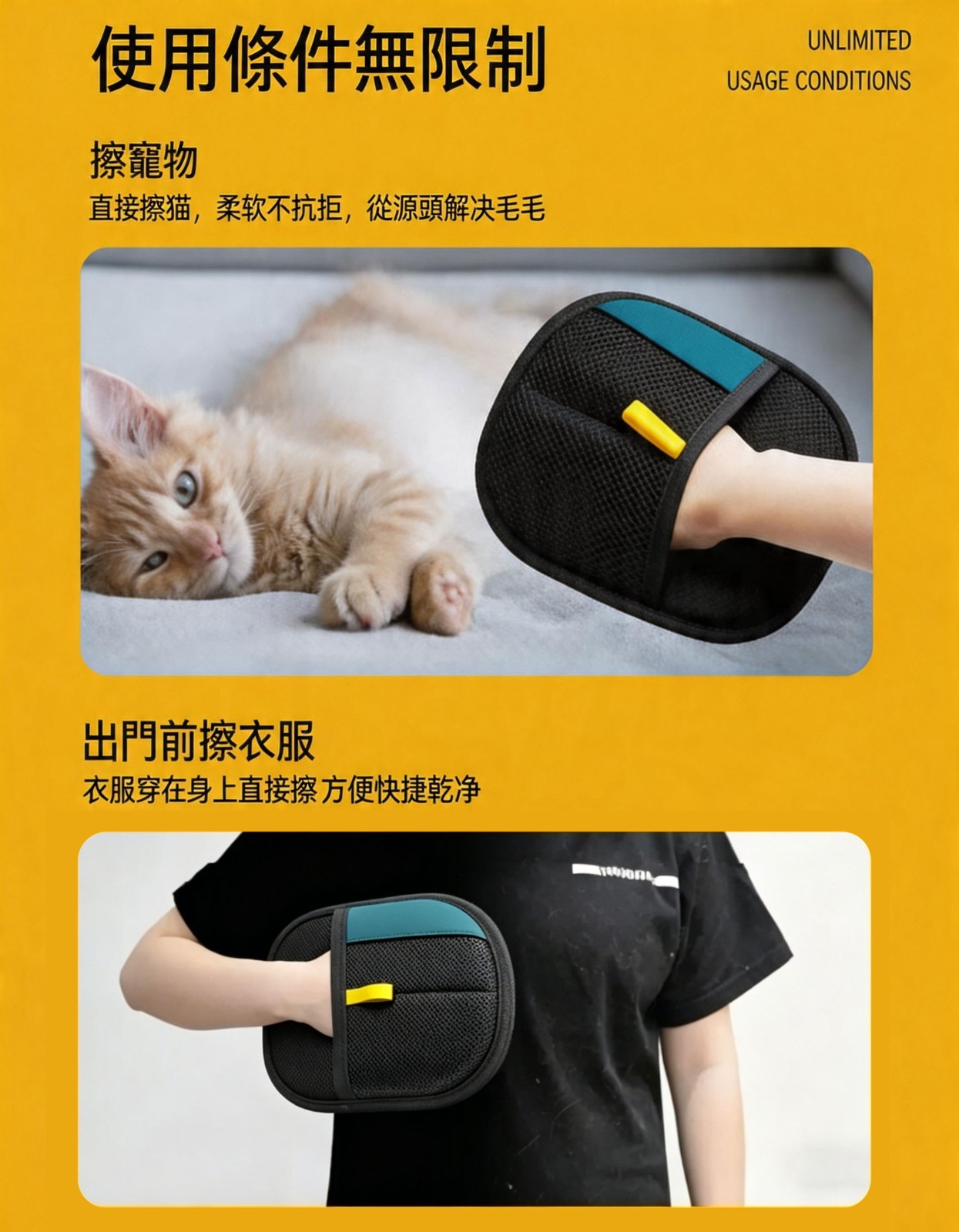 2分鐘前寵物靜電除毛手套【靜電吸附 除毛更輕鬆】,輕輕一戴,毛髮一抹即淨,讓家裡瞬間乾淨整潔! - 2入組【多場景使用】NT$1299